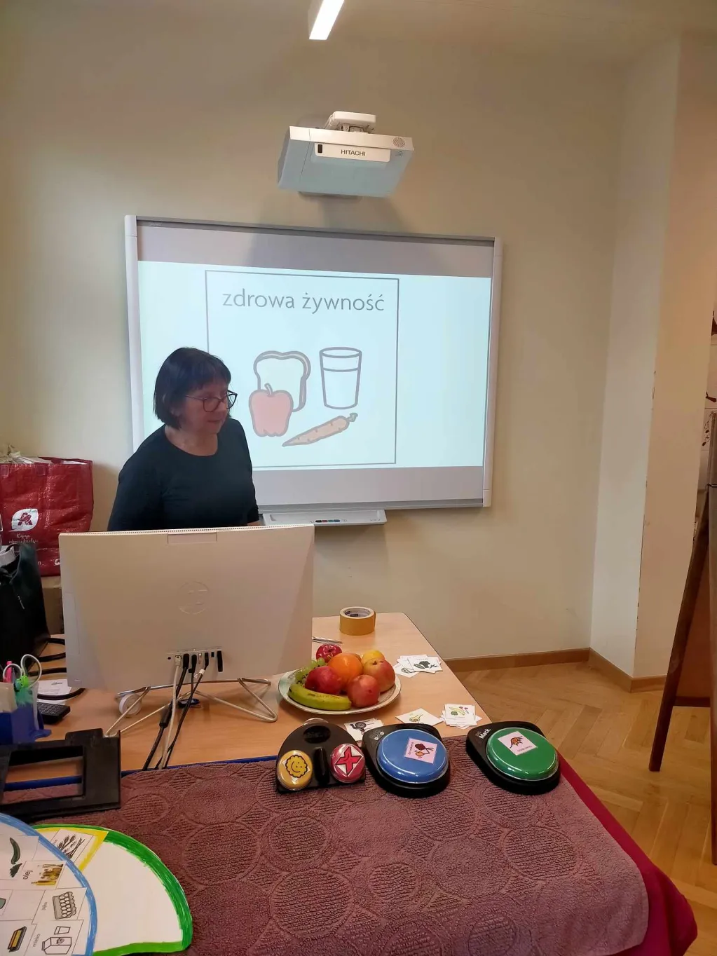 Uczniowie poznali historię Frania “Łakomczuszka”, a następnie wspólnie wykonali “Talerz zdrowia”.