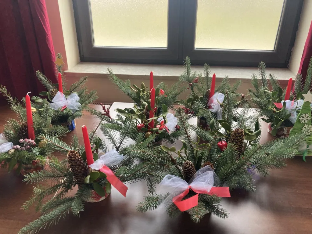Podczas międzypokoleniowych warsztatów z zaprzyjaźnionymi Seniorami z Domu Dziennego Pobytu w Falenicy na Kadetów tworzyliśmy piękne stroiki świąteczne 🎄🎄.