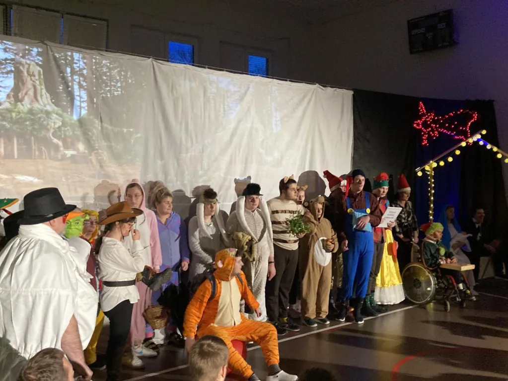 Uczniowie klas Przysposabiających do Pracy przedstawili ,”Bajkowe Jasełka” dla uczniów i rodziców. Było kolorowo, bajecznie i radośnie.