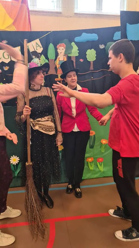 W piątek została zaproszona klasa 1a ze Szkoły Podstawowej przy ul. Wilgi w Warszawie-Radości wraz z uczniami klas 1-3 naszej placówki. Dzieci żywo reagowały w trakcie oglądania przedstawienia i wyraziły chęć odwiedzenia naszej szkoły ponownie. W poniedziałek występ odbył się ponownie dla klas 4-8, zespołów rewalidacyjnych oraz klas PdP.