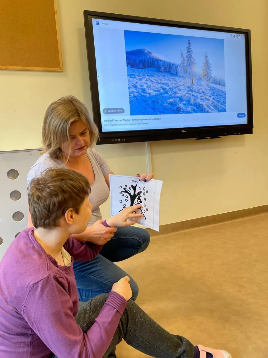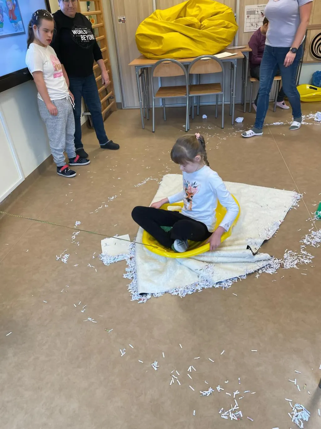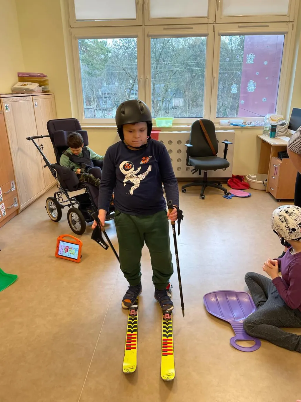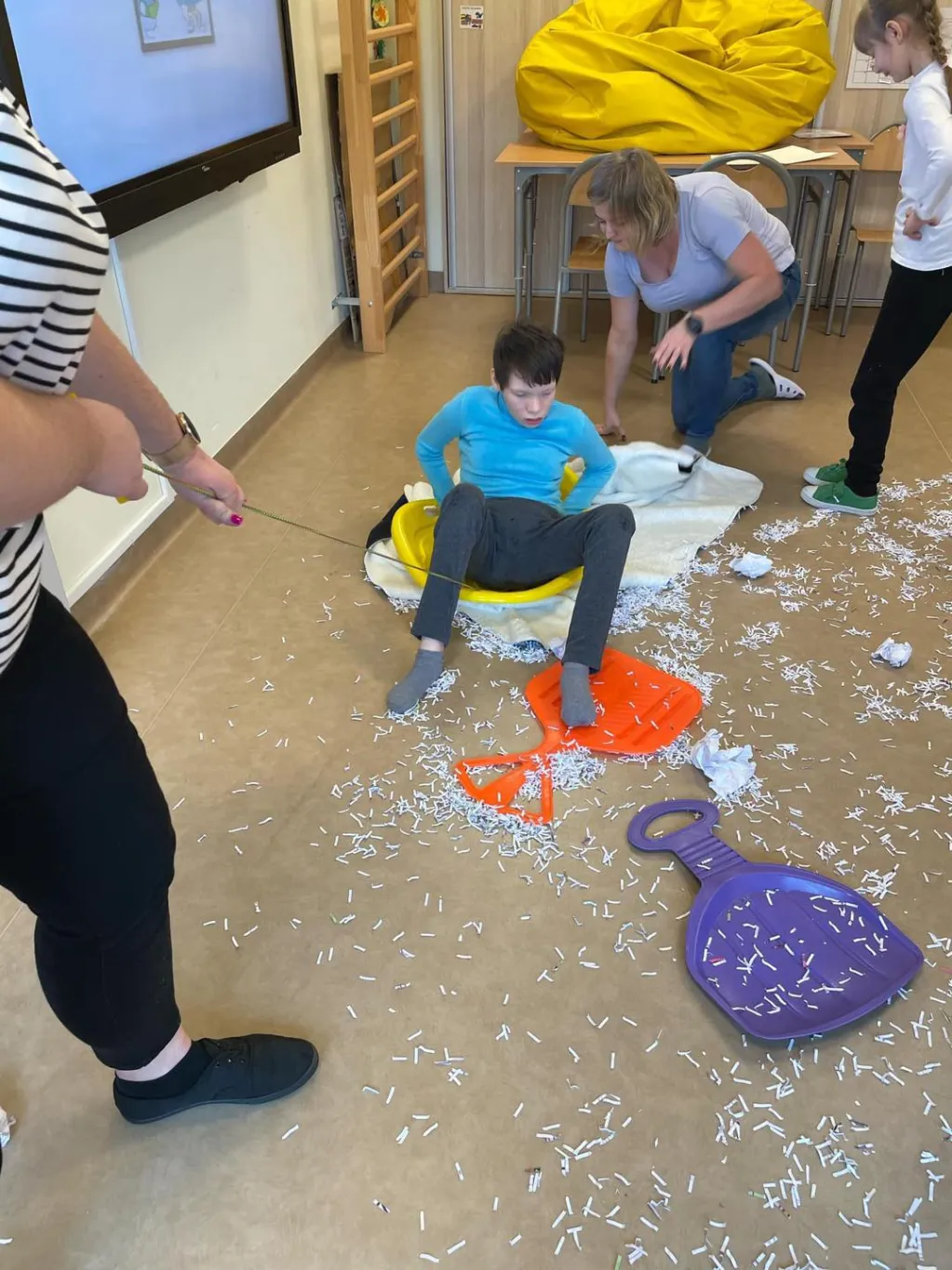 Dziewczyny z ZRW 1 oraz uczniowie z klasy III c SP podczas zajęć integracyjnych, których tematyką były sporty i zabawy zimowe.🛷⛷️❄️ 😉