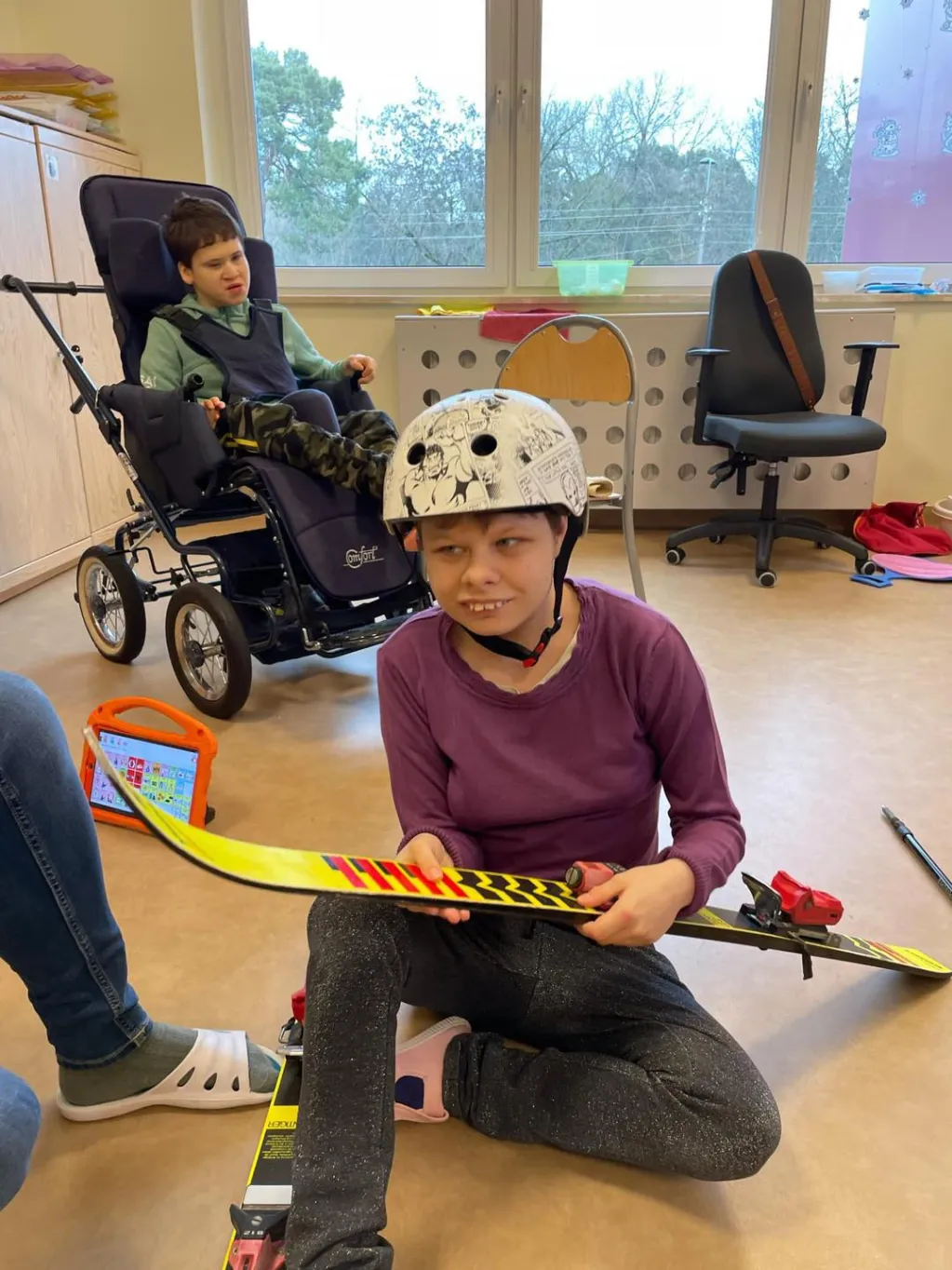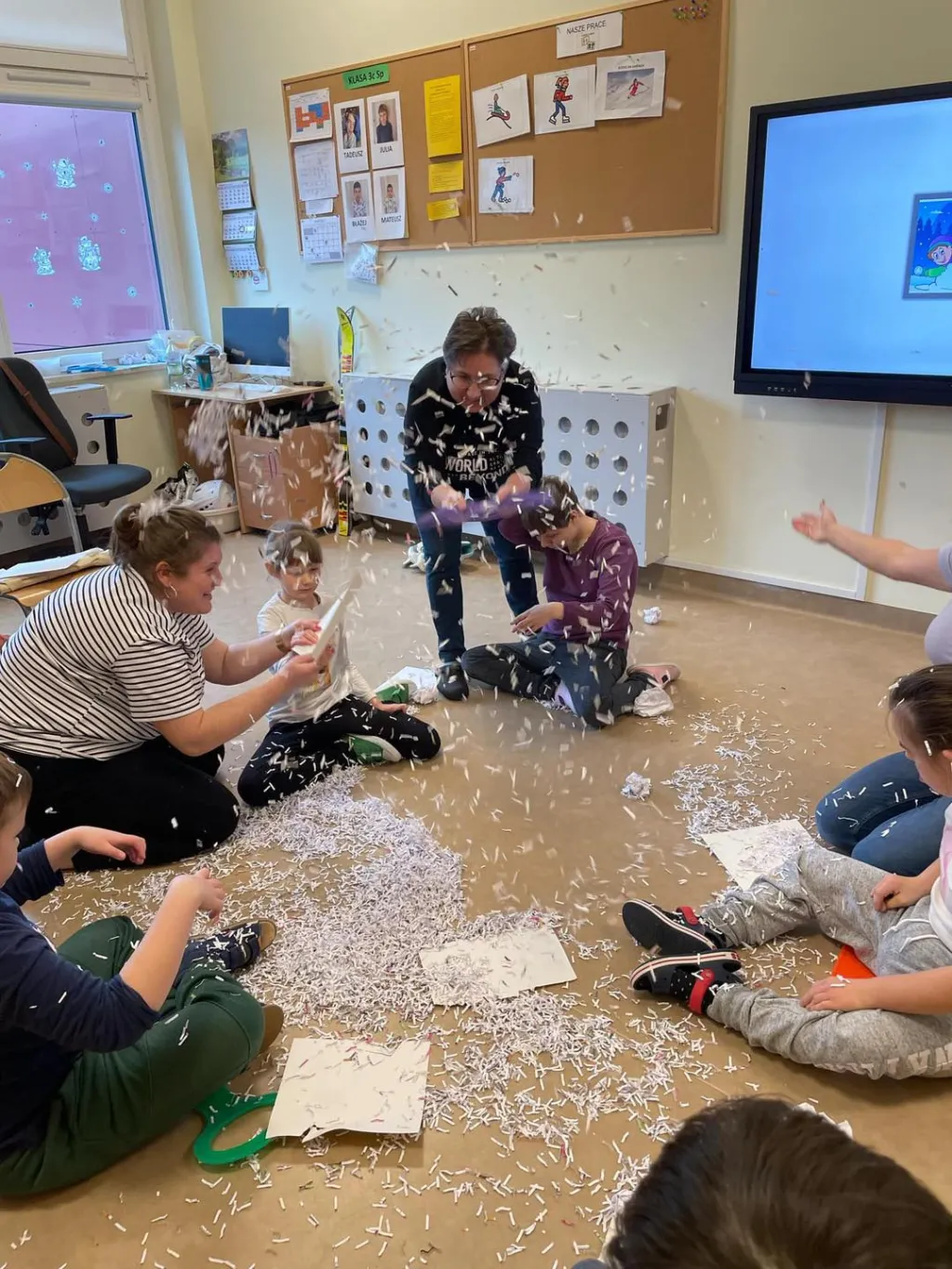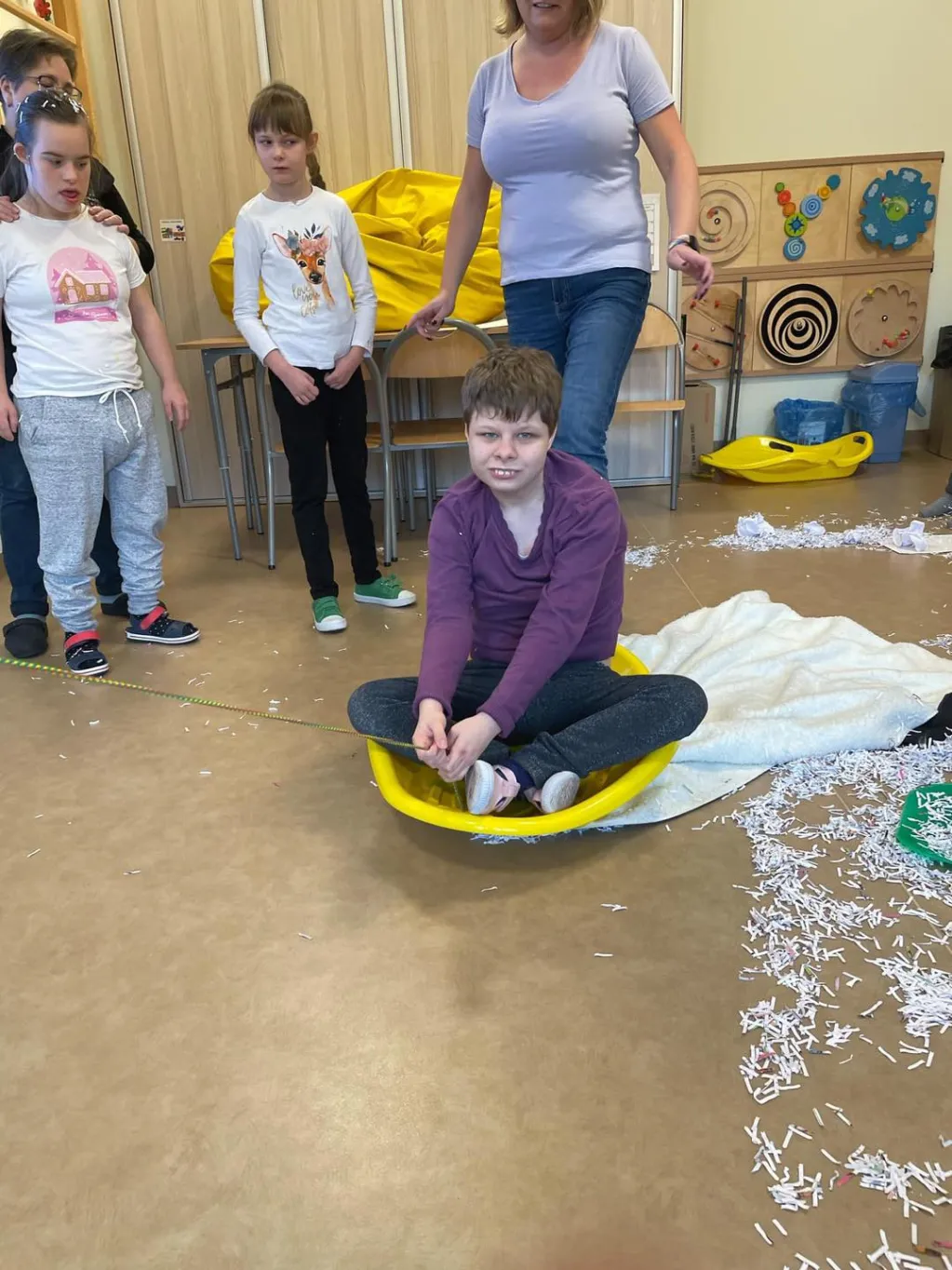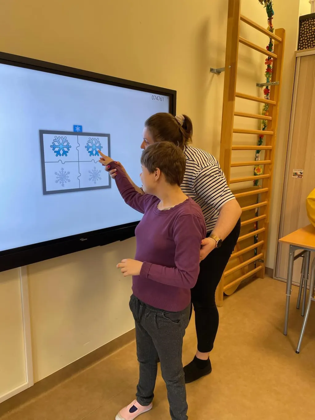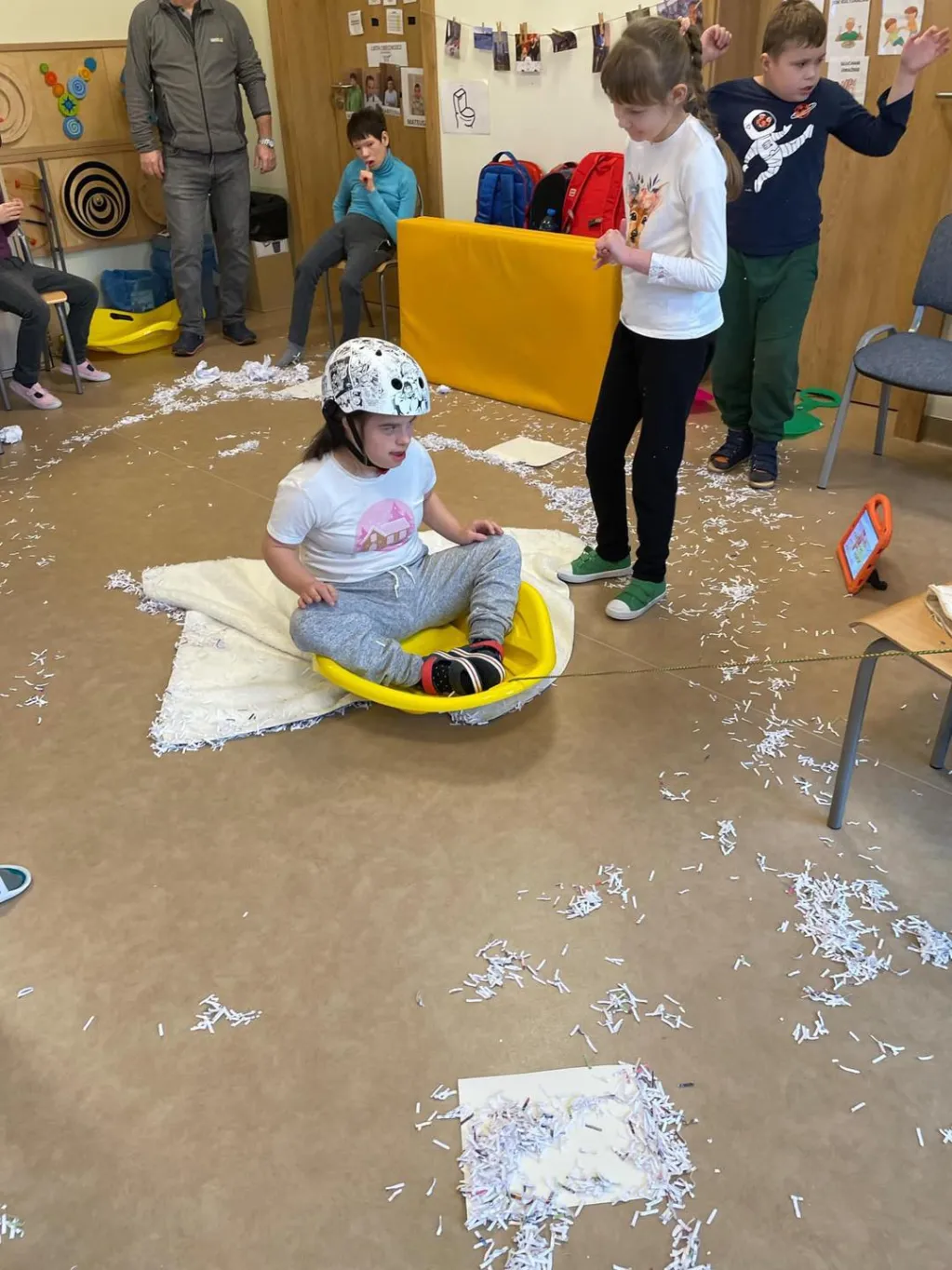 Dziewczyny z ZRW 1 oraz uczniowie z klasy III c SP podczas zajęć integracyjnych, których tematyką były sporty i zabawy zimowe.🛷⛷️❄️ 😉