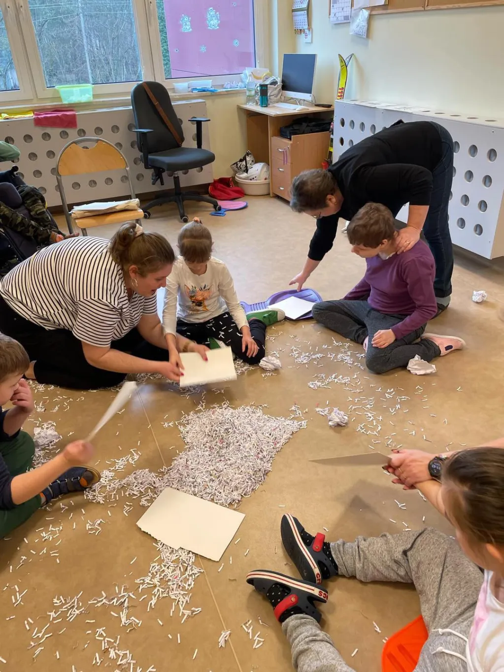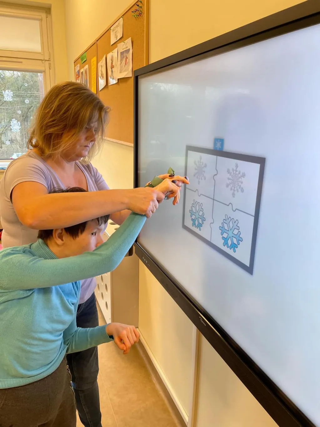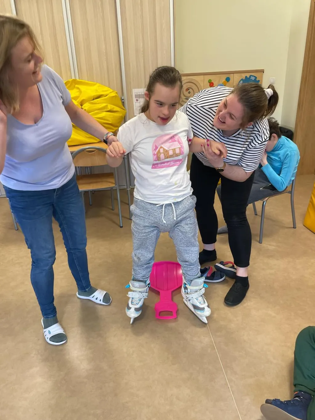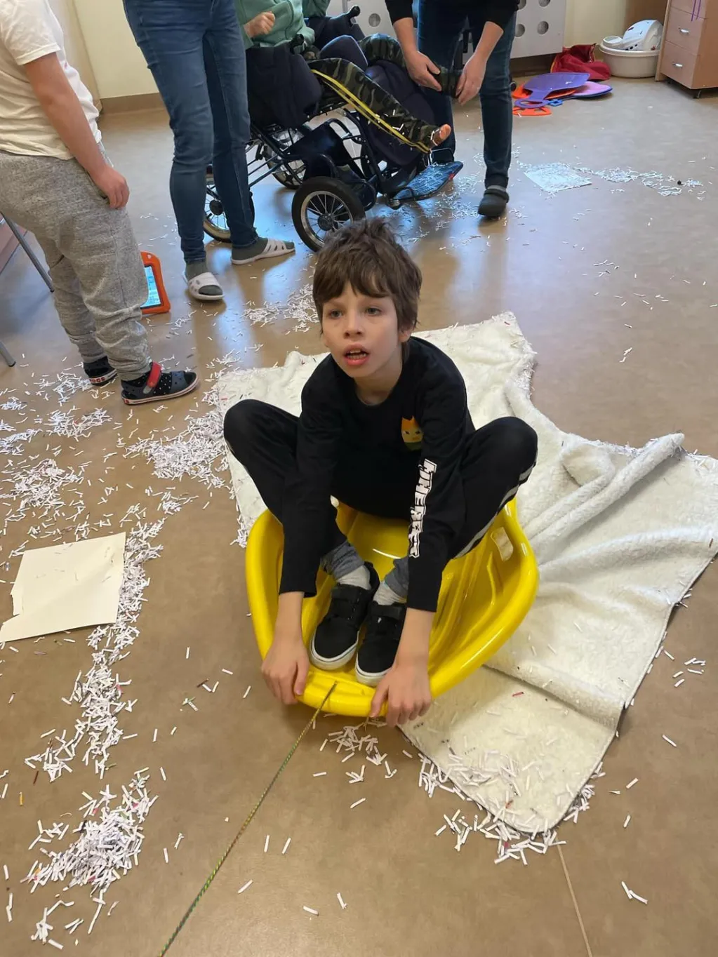 Dziewczyny z ZRW 1 oraz uczniowie z klasy III c SP podczas zajęć integracyjnych, których tematyką były sporty i zabawy zimowe.🛷⛷️❄️ 😉