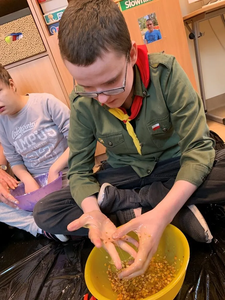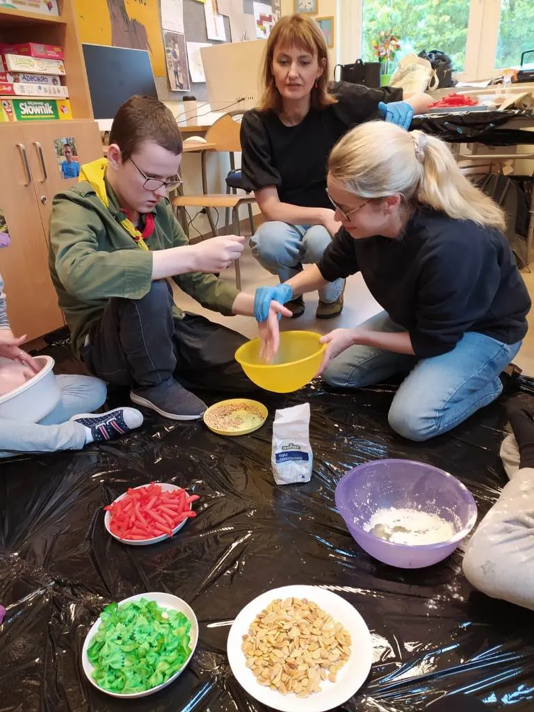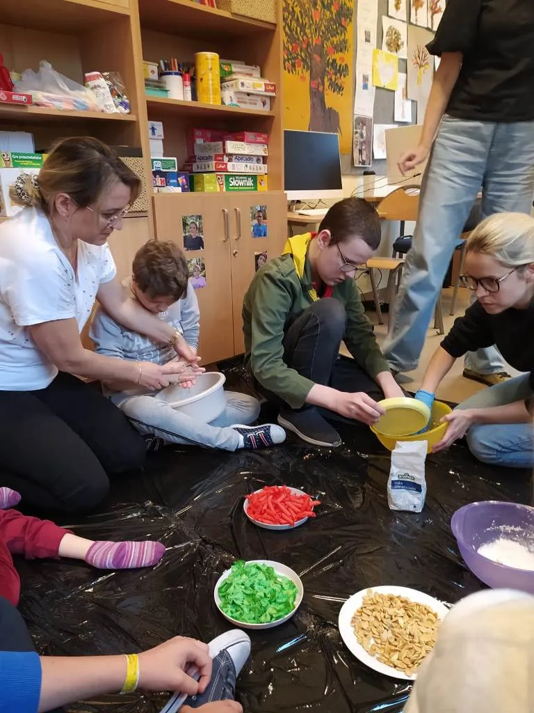 Na zajęciach integracyjnych z cyklu “Doświadczanie sensoryczne” spotkali się uczniowie z klas VIA SP, IA PdP oraz uczestnicy ZRW I.