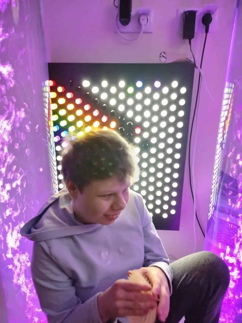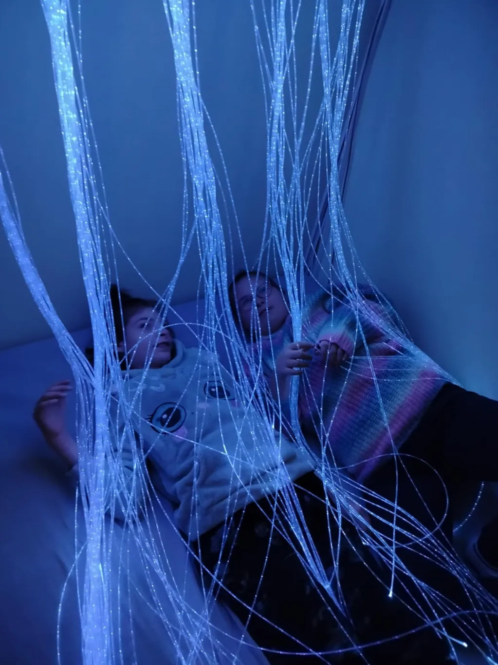 Zajęcia relaksacyjne w Sali Doświadczania Świata: Oliwia, Ela i Oskar z klasy IIIa SP oraz Maja i Martynka z ZRW1. 🧘