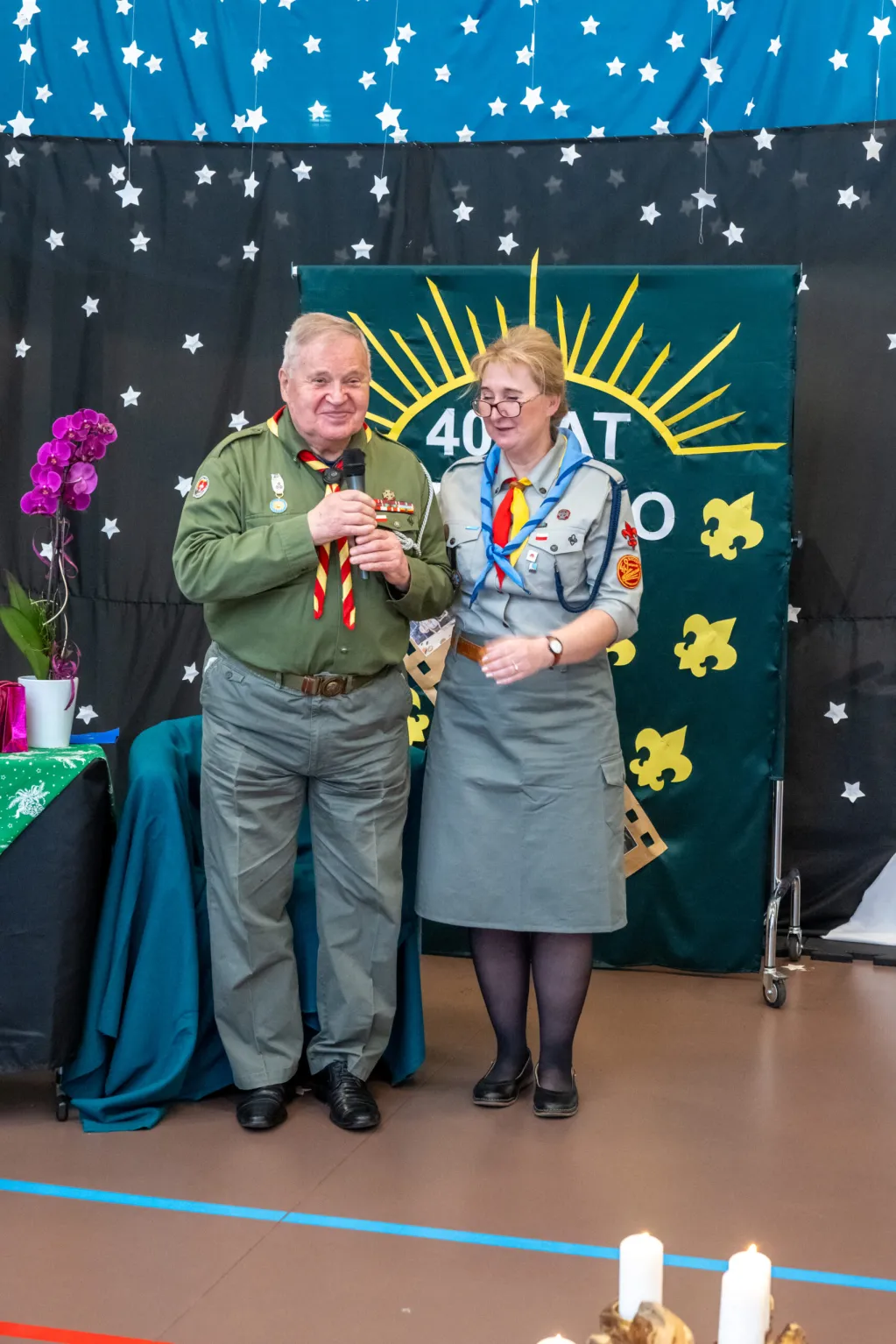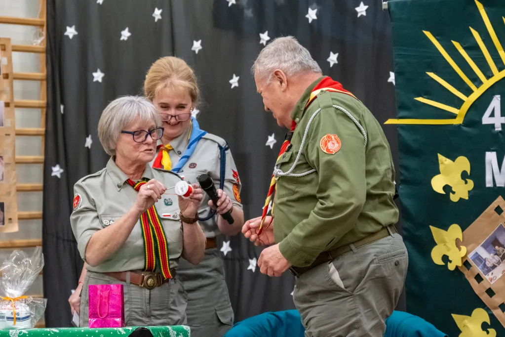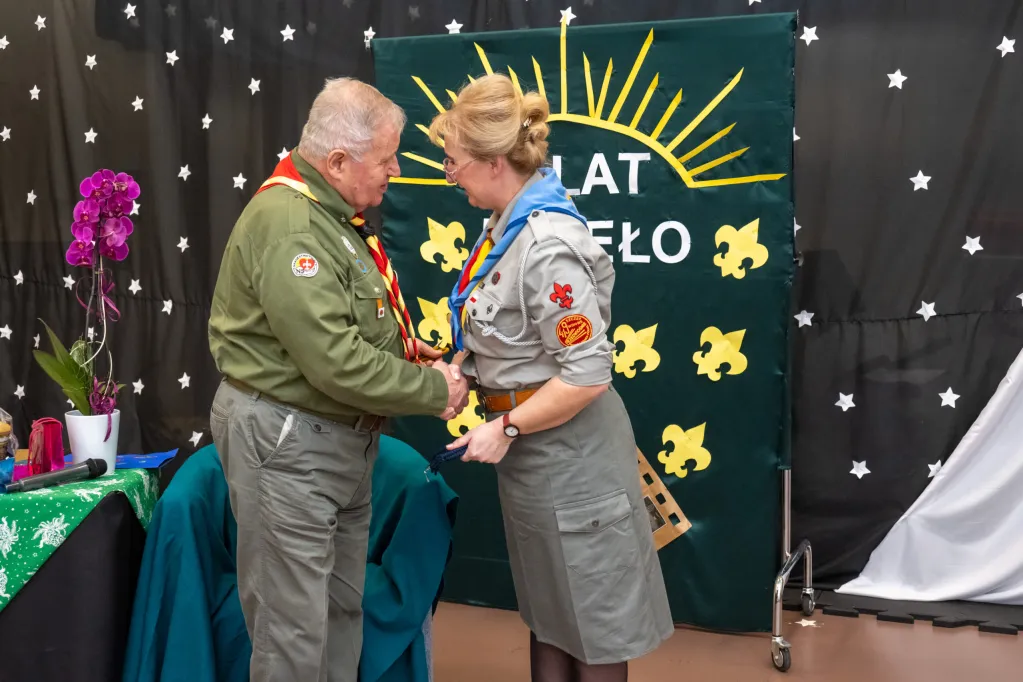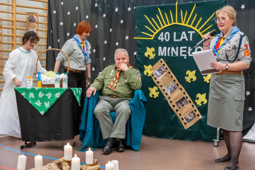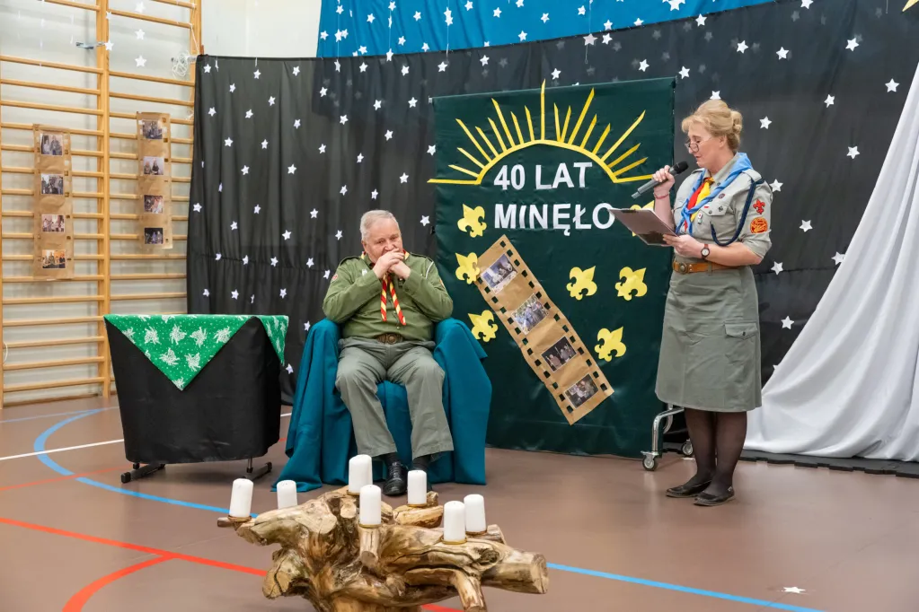 Po „części świątecznej” kolej przyszła na świętowanie Benefisu 40 – lecia służby instruktorskiej Harcmistrza Adama Sikonia na stanowisku Namiestnika Drużyn Harcerskich Nieprzetartego Szlaku Hufca Warszawa Praga Południe. Było wiele wspomnień i podziękowań. Natępnie nastąpiła uroczysta zmiana na funkcji Namiestnika. Na mocy Rozkazu Specjalnego L1/2024 Komendant Hufca zwolnił dh hm Adama Sikonia z funkcji Namiestnika i mianował na tę funkcję dyrektorkę dh-nę hm Iwonę Sekułę-Jastrzębską.